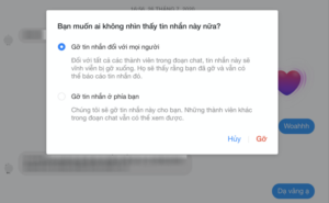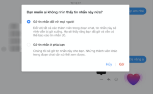 Để thực hiện bạn cần làm là tìm đến tin nhắn mình muốn thu hồi và nhấn vào biểu tượng dấu 3 chấm. Hai tuỳ chọn ‘Gỡ tin nhắn đối với mọi người’ và ‘Gỡ tin nhắn ở phía bạn sẽ hiện ra’. Lúc này, bạn chỉ cần chọn ‘Gỡ tin nhắn đối với mọi người’.