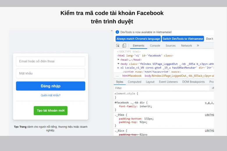Bước 6: Tại đây bạn hãy nhấn phím F12 trên bàn phím hoặc chuột phải > Sau đó chọn Kiểm tra. Một dãy mã nguồn sẽ hiển thị trên trình duyệt. Trong dãy mã này, bạn sẽ tìm thấy đoạn code cần thiết để RIP tài khoản.